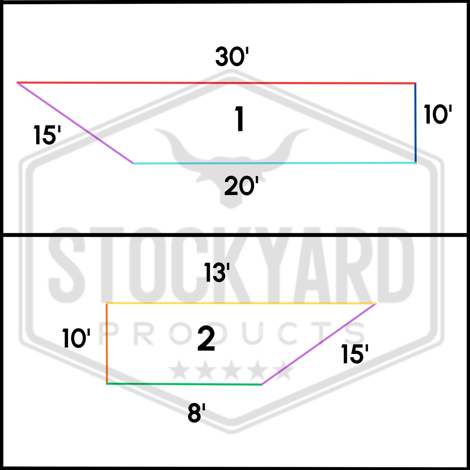 To calculate how many panels you need, you need to aquire the width measurement (the green line along the bottom) in feet, and divide by 3 (our S36 panels are 3' long). If you get a decimal, always round up.